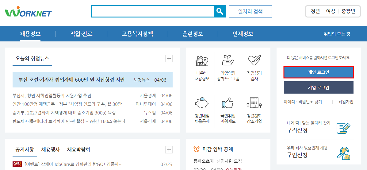 워크넷 구직신청하기